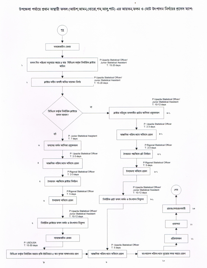 | ৩ | প্রধান অস্থায়ী ফসল(আঊশ,আমন,বোরো,গম,আলু,পাট) এর আয়তন, ফলন ও মোট উৎপাদন নির্ণয় | | দেখুন |